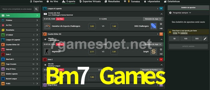 O Bm7 Games oferece uma grande seleção de opções de apostas em e-sports com probabilidades competitivas